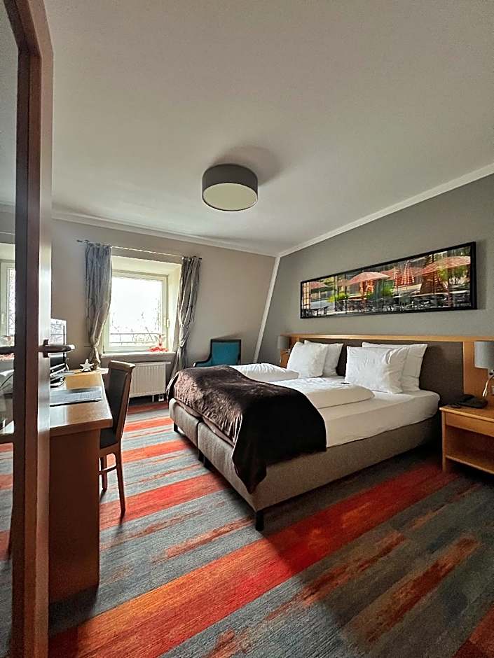 Very spacious room featuring a large flat-screen cable TV, mini-bar and a private bathroom with cosmetic mirror and free toiletries.